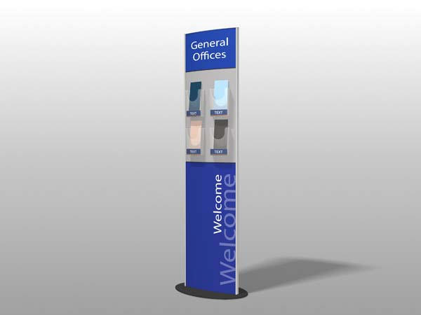 Vægskilt, 300 mm. x 700 mm., med en A4 brochureholder på den