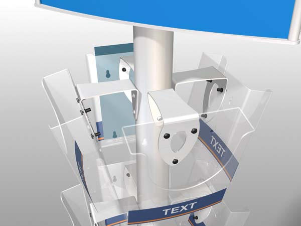 særlig metalbeslag (sølv) til at holde hver brochureholder.