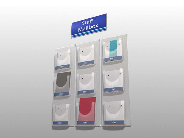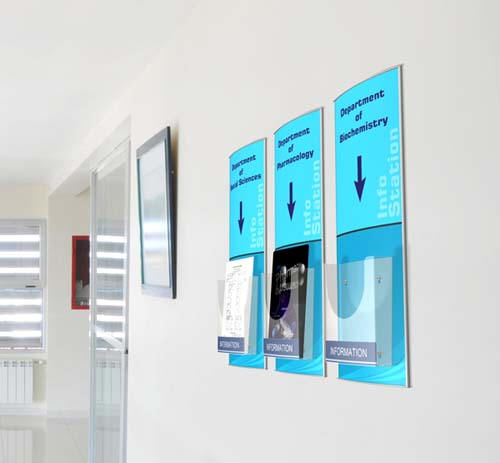 Vægskilt, 600 mm. x 700 mm., med tre 1/3 A4 brochureholdere.