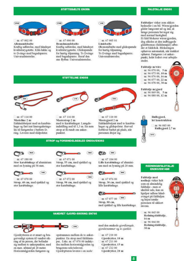 Faldstoptalje med nødhejs med 5 mm. stålwire og stor karabinhage (20